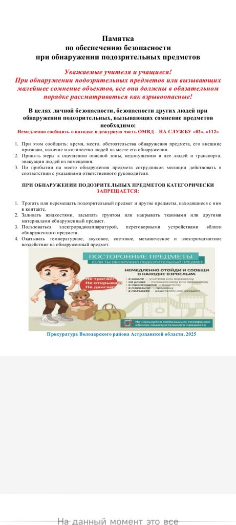 Памятка по обеспечению безопасности при обнаружении подозрительных предметов